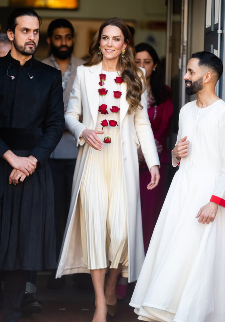 During the visit, members of the dance company presented Princess Kate with a floral garland decorated with pearls and roses. In many South Asian traditions, garlands are a meaningful symbol used to show respect, honor, or welcome. They are commonly exchanged at weddings, religious ceremonies, and cultural celebrations.